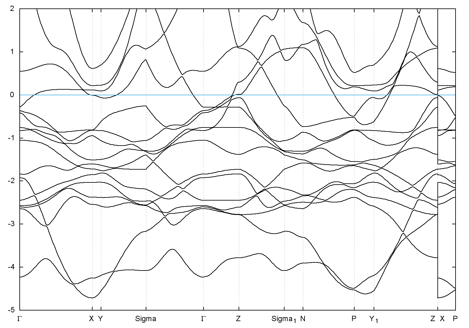 • Band gap = 0.0 eV