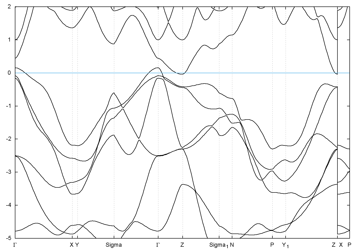 • Band gap = 0.0 eV