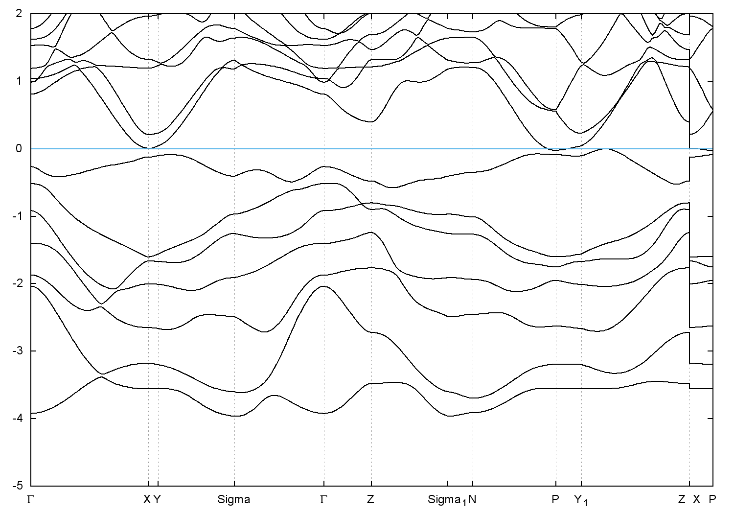 • Band gap = 0.0 eV