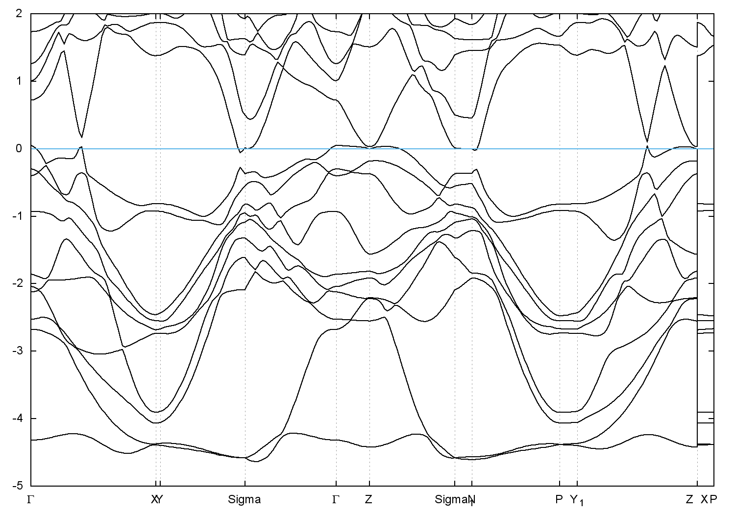 • Band gap = 0.0 eV
