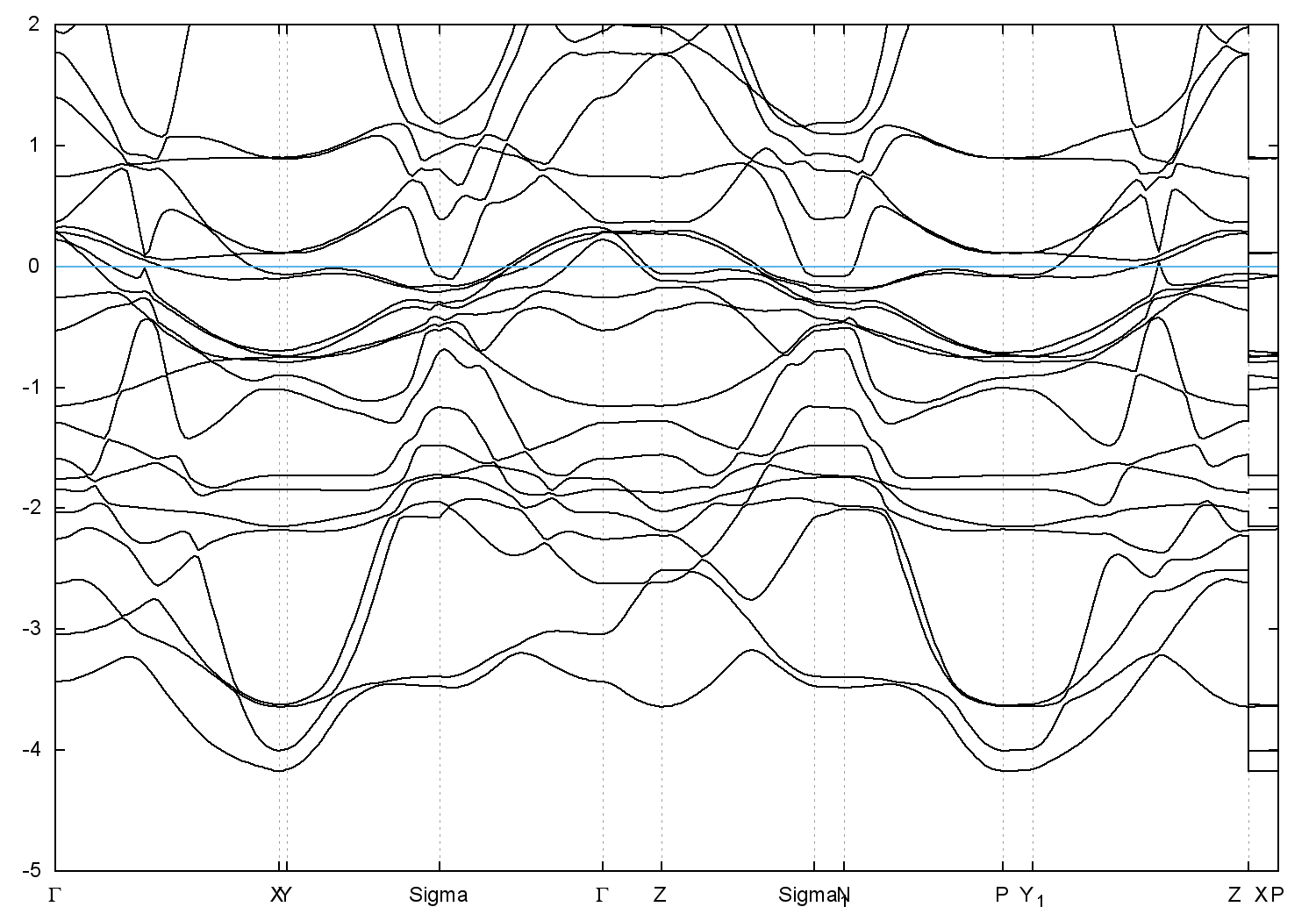 • Band gap = 0.0 eV